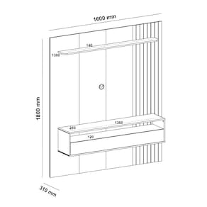 Dimensões: Altura: 180 cm Largura: 160 cm Profundidade: 31 cm Peso: 51,40 kg