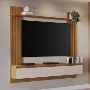 Painel Ripado para Tv até 65 Polegadas Off White/Freijó Trend - Laranja