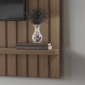 Disponível em Cinamomo e Castanho, combina facilmente com diferentes estilos de decoração. Ideal para quem busca um painel elegante e prático para TVs de até 60", suportando até 40kg distribuídos.