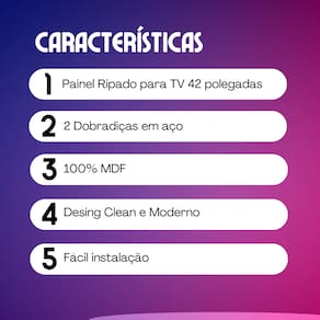 Características do produto:Compatível com TVs de até 42 polegadasDesign ripado moderno, que valoriza qualquer ambienteProdução em 100% MDF, material resistente e durávelAcompanha 2 dobradiças em aço para mais firmeza e segurança