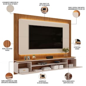 Ideal para sala de estar, o Painel Ripado Suspenso Para TV 70 Pol 210cm Rizzo D05 Off White Freijó, da Lyam Decor, traz uma proposta moderna e funcional para elevar um dos cômodos mais queridinhos da casa. Afinal, é na sala de tv que desfrutamos de um tempo em família, enquanto curtimos aquele filme ou série favorita.
