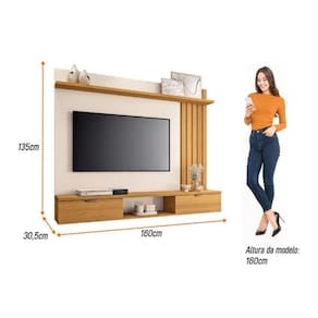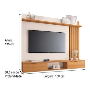Painel para TV Lets 1,60 Cinamomo/Off White HB Moveis O Painel para TV Lets é um painel funcional e uma ótima opção para clientes que buscam um móvel para otimizar o espaço para TV sem abrir mão de televisores maiores. Ainda mais, Com ripados decorativos em sua lateral, possui uma prateleira superior, além de duas portas basculantes com espaço interno para acomodar objetos de maneira prática e organizada.