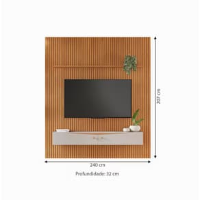 Produzido em MDP Ripado autêntico Acabamento pintura Uv Recomenda-se Tv até 75 Polegadas Acompanha suporte de Tv Portas báscula Puxadores em ABS Prateleira opcional