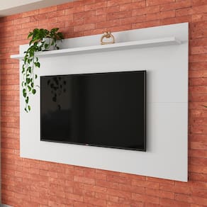 Compatível com TVs de até 55 polegadas, o modelo conta com prateleira superior para eletrônicos ou objetos decorativos, proporcionando praticidade no dia a dia.