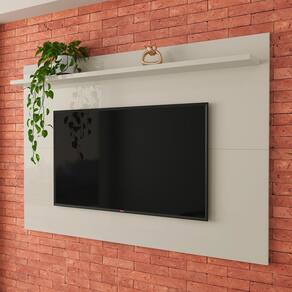 Compatível com TVs de até 60 polegadas, o modelo conta com prateleira superior para objetos decorativos ou aparelhos eletrônicos, proporcionando praticidade e organização no dia a dia.