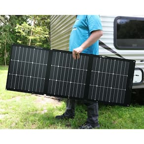 Desdobre o painel, fixe os suportes, ajuste o ângulo para maximizar a quantidade de luz solar, e você estará pronto para aproveitar a energia solar para seus geradores.
