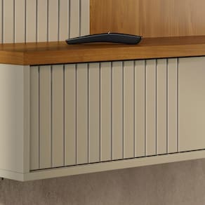 Estante Home Ícaro, móvel funcional que valoriza a organização e decorações da sua sala. Estrutura em MDP 15 mm, conta com 1 porta de correr com sistema de abertura por trilho plástico, 5 prateleiras (sendo 2 laterais em vidro de 5 mm) e 3 nichos abertos. Acomoda TVs de até 50 polegadas (suporta até 140kg distribuídos), inclui passa fios, puxadores e 6 pés em plástico (poliestireno). Acabamento em pintura UV texturizada (fosca e brilho). Este móvel chegará em sua casa separado em 02 volumes.