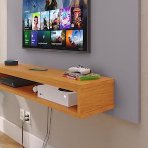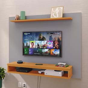 Conta com uma prateleira superior ideal para armazenar itens decorativos e um amplo nicho inferior, podendo ser utilizado para armazenar itens eletrônicos, como: videogame, controles, entre outros.