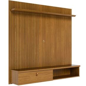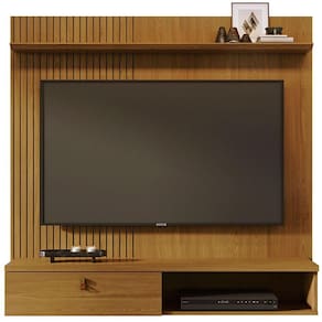 Painel Suspenso Para Tv 55 Polegadas 1 Porta Basculante Isis Cumaru Dimensões do Painel Suspenso para Sala: - Altura: 136,5 cm - Largura: 141 cm - Profundidade: 29 cm Característica do Painel Suspenso para TV de até 55 Polegadas: - Estrutura em mdp de 12, 15 e 25mm de espessura; - Acabamento de pintura padrão uv; - 1 Porta basculante com dobradiças metálicas; - Puxador com acabamento dourado fosco e revestimento que simula couro natural; - Prateleira superior com borda frontal chanfrada; - Painel lateral em MDF frisado (baixo relevo); - Espaço para tv: (L x A): 1,605 x 1,100 m; - Para tv de até 55 polegadas respeitando as medidas do espaço; - Não acompanha suporte para fixar tv (Vendido separadamente); - Não acompanha itens ou objetos de decoração;