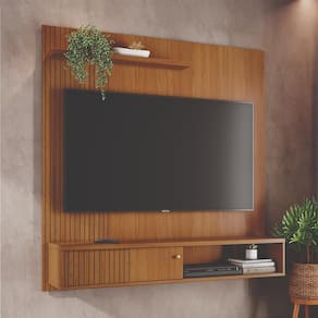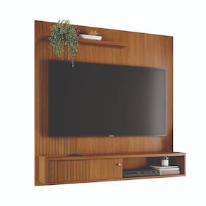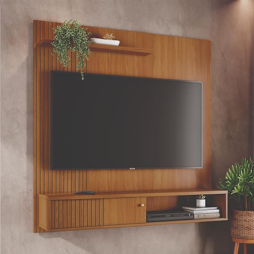 MDP e MDFPainel de TV Suspenso Madetec Aurora, com design contemporâneo e acabamento refinado, ele traz elegância e funcionalidade à sua sala. Seu visual ripado em MDF frisado com porta deslizante e puxador pontual dourado fosco é o toque de sofisticação que o ambiente merece.