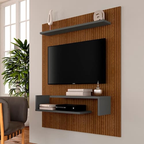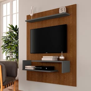 O Painel Sonora para TV até 55”, possui prateleiras para uma ótima organização e o aproveitamento de espaço com beleza e design.Medida do Painel:- Medida do painel montada: AxLxP:160CM x 135CM x 26,4CMDetalhes Técnicos Do Painel:- PAINEL PARA TV ATÉ 55” (POLEGADAS)- Material Painel: MDP 15 E 25MM (prateleiras)- Acabamento : Pintura U.V texturizado- Peso Suportado do nicho: 15KG- Tonalidade : Grafite/Freijó ripado- Fixado na Parede: Fixado com régua (MDP 15MM)- Estruturado com material de altíssima qualidade, evitando fungos e mofo.Conteúdo da Embalagem:- 01 Painel-Acessórios para montagem- Manual de MontagemObservações Importantes:- As imagens ambientadas são meramente ilustrativas e podem apresentar itens que não incorporam o produto;- Todos os nossos produtos são novos, acompanham documento fiscal e possuem garantia de 3 meses, essa garantia cobre somente defeitos de fabricação;- A entrega só será efetuada no endereço do CEP, caso o endereço seja diferente do CEP informado no pedido, a entrega terá cobrança adicional e o comprador arcará com as despesas;- Não realizamos entregas para zonas rurais, via caminhos fluviais e distritos, por isso não aceitamos CEP GERAL da região;- Não é possível realizar o agendamento de entrega do produto, é necessário que acompanhe o rastreio de seu pedido para saber a previsão de entrega;- As entregas somente serão realizadas para um responsável maior de idade (+18);- Enviamos para diversos estados, sendo assim nossas entregas são realizadas por transportadoras parceiras de nossa empresa. Confira as dimensões antes da compra e certifique-se de que o produto passará por elevadores, portas e corredores já que nossa entrega não inclui a subida de lances de escada, transporte por elevador e o lançamento de produtos, em caso de condomínios residenciais a entrega é feita somente até a portaria. Todas as entregas são realizadas em dias e horários comerciais;- Ao receber os seus produtos observe se a embalagem se encontra em perfeitas condições. Se você adquiriu algum móvel, confira atentamente a quantidade de volumes e o aspecto físico das embalagens. Confira também se a cor do móvel está de acordo com o seu pedido;- O prazo de cancelamento por arrependimento é de até 7 dias corridos a contar da data de recebimento;- Os produtos e assistências são enviados DESMONTADOS, MONTAGENS E DESMONTAGENS recomendamos sempre a contratação de um montador profissional e é válido lembrar que o custo desses serviços é por conta do comprador;- Objetos decorativos que aparecem na foto não acompanham o produto;- Evitar a exposição direta à luz solar e à umidade;- Para limpeza, limpar com pano macio e seco, não utilizar qualquer outro tipo de produtos químicos;- As cores do produto podem variar de acordo com o monitor, a iluminação do ambiente ou sua percepção visual;