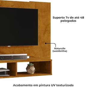 Painel Suspenso Navi, solução prática e compacta para ambientes diversos. Estrutura em MDP (15mm) com acabamento em pintura UV texturizada. Possui nichos vazados e painéis sobrepostos. Suporta Tvs de até 48 polegadas com segurança. Fixação por meio de parafusos. Este produto será entregue em 1 volume.