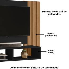 Painel Suspenso Navi, solução prática e compacta para ambientes diversos. Estrutura em MDP (15mm) com acabamento em pintura UV texturizada. Possui nichos vazados e painéis sobrepostos. Suporta Tvs de até 48 polegadas com segurança. Fixação por meio de parafusos. Este produto será entregue em 1 volume.