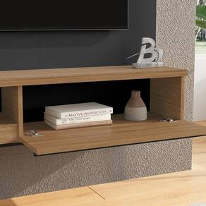 Painel Suspenso Denver, design moderno e elegante para seu lar. Estrutura em MDP 15 mm (tampo e prateleira superior 25 mm) com acabamento em pintura UV texturizada. Possui porta basculante com dobradiças metálicas e puxador em MDF (revestido), espelhos laterais decorativos, prateleiras funcionais (sendo uma em vidro 6 mm), passa fios. Destaque para o ripado decorativo (15 mm em baixo relevo) e luminária LED inclusa. Suporta TVs de até 55 polegadas com segurança. Fixação por meio de parafusos. Este produto será entregue em 1 volume.