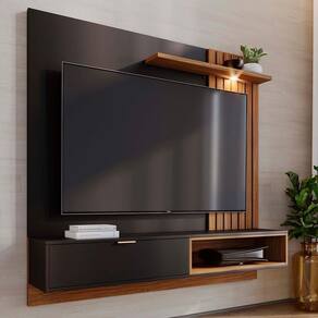 Painel Suspenso Tocantins 1.6, combina design sofisticado e funcionalidade para transformar sua sala. Estrutura em MDP (25 e 15 mm) com acabamento em pintura UV texturizada. Composto por porta basculante, puxador metálico (fosco), prateleira com luminária LED, detalhe lateral frisado (baixo relevo) e passa fios. Suporta TVs de até 60 polegadas com segurança. Este produto será entregue em 2 volumes.