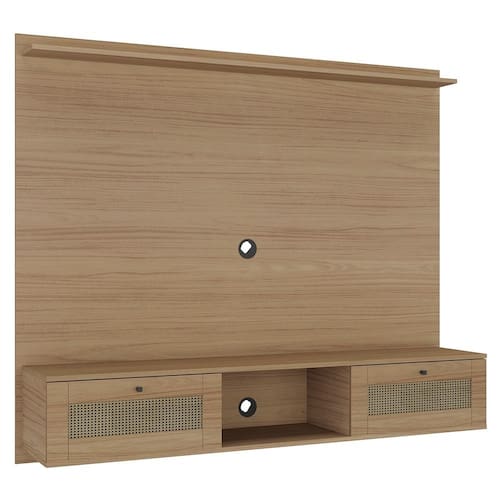 Características adicionais: Para TVs de até 72 polegadas; Possui 2 passa fios; Acompanha suporte para TV. Amplo espaço para decorações e eletrônicos; 2 portas basculantes com amortecedor e dobradiças metálicas; 1 prateleira superior e 1 Nicho; Pintura 3D no acabamento ripado.