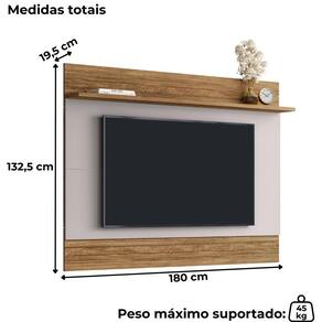 Painel Suspenso Icaraí, compacto, funcional e moderno! Estrutura em MDP/MDF (15 mm) com acabamento em pintura UV texturizada. Possui prateleira (MDP 25 mm) e frisados decorativos (MDF 15 mm baixo relevo). Suporta TVs de até 75 polegadas com segurança. Fixação por meio de parafusos. Este produto será entregue em 1 volume.