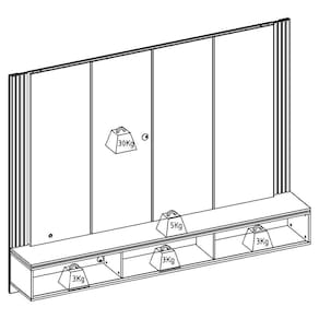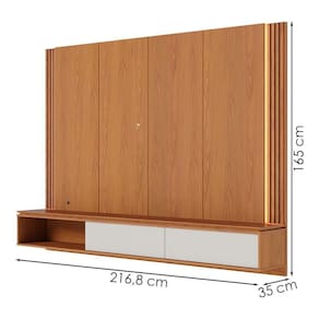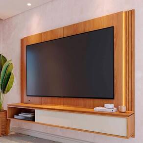 Painel Suspenso Loa, combina design moderno e funcionalidade para transformar sua sala. Estrutura em MDF/MDP (25, 15 e 12 mm) com acabamento em pintura UV texturizada. Composto por portas de correr, tampo chanfrado, painel sobreposto e laterais ripadas com luminárias LED, além do passa fios embutido. Suporta TVs de até 75 polegadas com segurança. Este produto será entregue em 3 volumes.