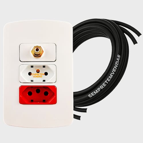 Painel Tomada 4x2 Áudio Vídeo e Cabo de Áudio 5 Metros