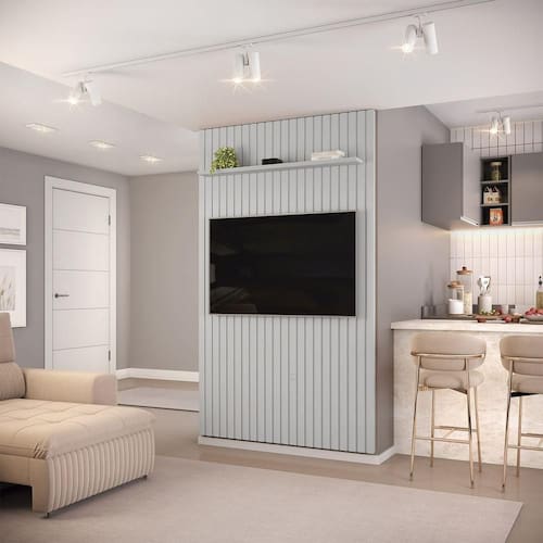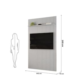 Com visual clean e proporções equilibradas, o Painel Trento é a escolha certa para compor salas modernas com elegância e funcionalidade.Projetado para TVs de até 60 polegadas, o modelo oferece espaço amplo para a instalação da tela, além de nicho inferior ideal para aparelhos eletrônicos e objetos diferencial está na usinagem discreta do tampo e no acabamento refinado, que trazem um toque contemporâneo ao ambiente sem sobrecarregar o composição horizontal valoriza ambientes integrados, promovendo um efeito visual leve e ões:Altura: 240cmLargura: 143,7 cmProfundidade: 19cmObservações:- Indicado para TVs de até 60 polegadas- Tampo usinado com acabamento de alto padrão- Visual clean e moderno, fácil de harmonizar com diversos estilos- Ideal para salas integradas e ambientes contemporâneos