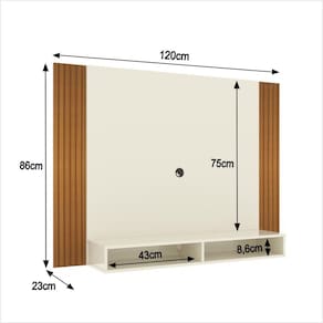Ambiente Principal: Sala de Estar | Largura: 120 cm | Complexidade da Montagem: Média | Pessoas necessárias para montagem: 1 | Altura: 86 cm | Profundidade: 23 cm | Suporta até: 30 kg | Possui iluminação Não | Medida máxima para TV: 43 polegadas | Origem do produto Nacional | Necessita montagem: Sim | Possui portas: Não Possui Portas | Possui gavetas: Não Possui Gavetas | Quantidade de caixas de embalagem: 1 | Possui prateleiras?: Não Possui Prateleiras | Possui nichos?: Possui 2 nichos | Possui espelhos?: Não Possui Espelhos | Possui vidro?: Não Possui Vidro | Modelo Bonsai; Estante; Painel; Sala de Estar; Quarto; Royal; | Marca: ViaNossa; ViaNossa Móveis; EDN Móveis; Bonsai; Royal | Material: MDP e MDF | Formato do móvel: Painel | Acabamento Pintura UV | Tempo de garantia: 3 meses | Tipo de garantia: Fabricante | Inclui manual de montagem: Sim Off White e Ripado