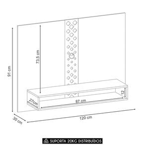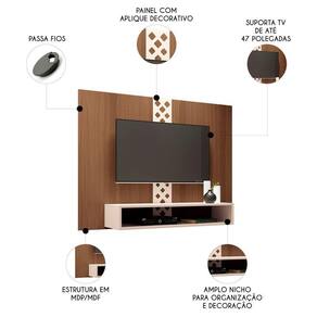 Com medidas compactas e design clean, esse painel para tv é versátil e funcional, principalmente se você tiver uma sala de estar pequena, pois não ocupará espaço de circulação, sem contar que você pode aproveitar a parte abaixo da bancada para dispor puffs decorativos e, assim, ganhar em mais lugares. Outro modo é aproveita-lo para instalar a tv no quarto ou até mesmo na área de lazer. Falando em tv, esse painel suporta aparelhos de até 47 polegadas, sem contar o nicho que serve de apoio para os demais itens, como DVD, vídeo game e objetos decorativos.