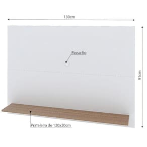 A prateleira espaçosa e o nicho discreto acomodam seus aparelhos eletrônicos, DVDs, livros e objetos decorativos, mantendo tudo à mão e organizado. O sistema passa fios integrado garante um visual clean e livre de emaranhados, proporcionando um ambiente harmonioso e livre de distrações visuais.
