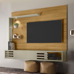 O Painel TV 50 Pol e Bancada Suspensa Keren Z10 Cumaru/Opala, da Mpozenato, combina sofisticação e funcionalidade para transformar sua Sala de Estar.