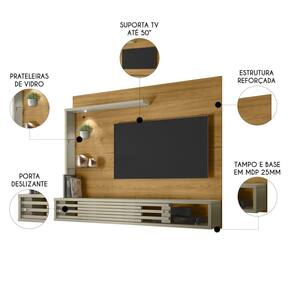 Projetado para TVs de até 50 Polegadas, o Painel oferece um suporte seguro e elegante, valorizando o ambiente com sua estrutura moderna e acabamento impecável. Com duas portas deslizantes, a Bancada Para TV proporciona praticidade no dia a dia, permitindo um acesso fácil aos compartimentos internos. Suas prateleiras de vidro são perfeitas para expor itens decorativos ou eletrônicos com estilo, enquanto a luminária de LED integrada adiciona um toque sofisticado, destacando seus objetos favoritos. Fabricado com chapas em MDP de 15 e 25mm, o conjunto oferece durabilidade e resistência, garantindo um móvel que alia beleza e qualidade. Ideal para quem busca um design funcional e elegante, o Painel de TV e Bancada Suspensa é a escolha certa para renovar a decoração da sala com charme e modernidade.