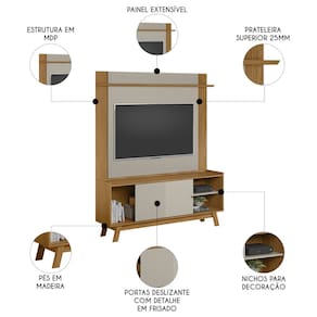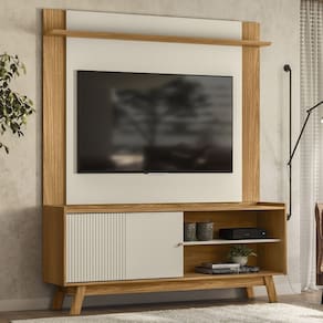 O Painel Suspenso é projetado para TVs de até 55 polegadas, proporcionando um visual mais clean e moderno. A prateleira superior oferece um ótimo espaço para objetos decorativos, tornando o ambiente mais aconchegante e personalizado. Juntos, o Rack e o Painel formam a combinação perfeita de elegância, funcionalidade e praticidade, criando um espaço de estar moderno e confortável, ideal para quem deseja sofisticação em cada detalhe.
