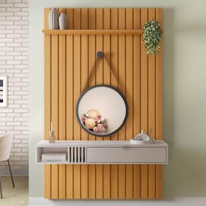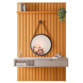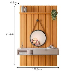 Como painel para tv você poderá instalar aparelho de até 50 polegadas ou até 32 polegadas sobre o tampo da bancada. Outra opção é aproveitá-lo como um aparador com paineldecorativo - você pode instalar um espelho redondo, transformando-o totalmente em um ícone complementar. Enfim, vai da sua criatividade; e seja qual for a sua opção, de uma coisa temos certeza, você vai amar!