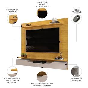 Com um design elegante, ele é perfeito para espaços compactos, adaptando-se à Sala de Estar, dormitórios ou áreas de lazer com versatilidade. Projetado para suportar TVs de até 60 polegadas. O Painel de TV se destaca pela ampla prateleira superior, ideal para exibir objetos decorativos com elegância. Suas duas portas basculantes com usinagens curvas oferecem um espaço discreto para armazenar itens, enquanto o nicho central acomoda seus eletrônicos de maneira prática e acessível. O tampo chanfrado, com um acabamento delicado, adiciona sofisticação ao conjunto, elevando o visual do ambiente. Para maior organização, o Painel Para TV conta com um sistema de passa-fios integrado, mantendo os cabos organizados e fora de vista. Produzido em MDF e MDP provenientes de reflorestamento e acabamento em pintura UV, o Painel Para Sala alia durabilidade, resistência e respeito ao meio ambiente.