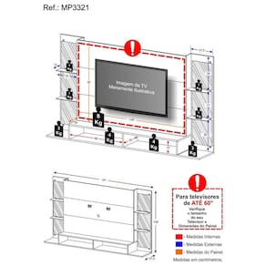 *Devido as variações de tamanho dos televisores no mercado, sugerimos que verifique as medidas da sua TV e compare com o painel antes de efetuar a compra.