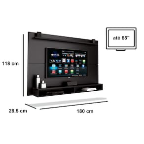 Painel Tv 65 Polegadas Maxi EDN Móveis - Preto Muito resistente O painel EDN suporta 50kg, ou seja, TV's com até 65 polegadas. Robusto e com estrutura reforçada, é fabricado em MDP, além de pintura de impressão UV aumentando a resistência contra mofos garantindo maior vida útil ao móvel. Em termos de design, dá um show com a tonalidade que você tanto deseja para tornar a sua casa mais bonita e sofisticada Painel tv 65 polegadas Max EDN móveis O Painel Maxi é uma ótima opção para você que deseja deixar a sua sala com um design mais moderno e sofisticado. Esse modelo de painel possui nichos e uma prateleira, então além de deixar o ambiente mais bonito, ele também vai ajudar a manter a organização de aparelhos eletrônico e objetos de decoração. Cor: Preto Especificações do painel maxi - Altura: 118 cm - Largura: 180 cm - Profundidade: 28,5 cm - Ideal para TVs de até: 65 Polegadas - Necessita Montagem? Sim, acompanha esquema de montagem. - Peso: 34,0 kg Dicas de limpeza e informações importantes Sempre limpar com pano umedecido, seguido por pano seco. Nunca utilizar produtos químicos, pois podem afetar a durabilidade do móvel; Atenção! Confira as dimensões deste produto e certifique-se de que passará normalmente por supostos elevadores, portas, escadas e/ou corredores de sua moradia; As imagens são ilustrativas, eletrodomésticos e demais objetos que compõem o cenário, não fazem parte do anúncio; Sobre a tonalidade das cores, poderá ocorrer alterações conforme a configuração do seu monitor. Orientamos que a montagem e instalações do produto seja realizado por um técnico de sua confiança, após a sua entrega. Garantia de 3 meses pelo fornecedor