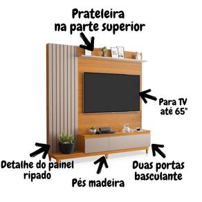 Rack Painel de TV Jakarta para TV até 65" - Elegância com Detalhe Ripado em Freijó com Maní Transforme sua sala de estar em um ambiente moderno e sofisticado com o Rack Painel de TV Jakarta. Projetado para suportar TVs de até 65 polegadas, este móvel é a combinação perfeita de funcionalidade e estilo. O acabamento em freijó com maní traz um toque natural e acolhedor, enquanto o detalhe ripado nas portas inferiores adiciona um charme contemporâneo que se destaca em qualquer decoração. Características Principais do Rack Painel de TV Jakarta: Compatibilidade com TV de até 65 polegadas: Crie um espaço de entretenimento ideal, com visual organizado e elegante. Prateleira Superior Funcional: Espaço perfeito para exibir itens decorativos, aparelhos eletrônicos ou até mesmo livros, adicionando personalidade ao ambiente. Duas Portas Inferiores Basculantes: Sistema de abertura prático e fácil, ideal para armazenar e organizar diversos itens como controles remotos, DVDs, revistas e muito mais, mantendo sua sala sempre arrumada. Detalhe Ripado Sofisticado: O detalhe ripado nas portas inferiores não só acrescenta um elemento de design moderno, mas também oferece ventilação para os dispositivos eletrônicos armazenados. Acabamento em Freijó com Maní: Combinação de cores que confere um toque elegante e acolhedor, adaptando-se perfeitamente a diferentes estilos de decoração, desde os mais clássicos aos contemporâneos. Durabilidade e Qualidade: Fabricado com materiais de alta qualidade, garantindo resistência e durabilidade para uso prolongado. Escolha o Rack Painel de TV Jakarta para trazer estilo e funcionalidade para sua sala de estar. Perfeito para quem busca um design moderno com toque natural, proporcionando um ambiente aconchegante e organizado para momentos de lazer e entretenimento. Adquira agora e eleve o nível de sofisticação e praticidade da sua casa! IMAGENS MERAMENTE ILUSTRATIVAS.