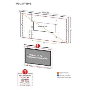 Dimensões do produto montado: Altura: 90cm - Largura: 136 a 168cm - Profundidade: 3cm *Você pode consultar as medidas internas na imagem técnica do produto.