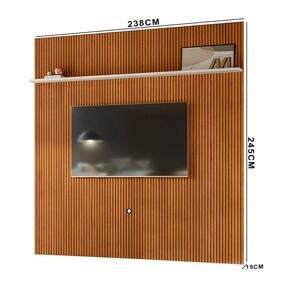 Painel Tv 75 Pol 238cm Ripado Para Sala Kalven M20 - D'rossi Cor Cinamomo E Off White O Painel Ripado Kalven, é a escolha ideal para quem busca um móvel imponente, moderno e durável. Com 238 cm de largura, é perfeito para ambientes amplos e acomoda TVs de até 75 polegadas com segurança e elegância. Com design do piso-teto, ele preenche ambientes amplos com elegância e modernidade. Seu destaque fica por conta do painel em MDF frisado em baixo relevo, que adiciona textura, profundidade e sofisticação à decoração. A estrutura é composta por chapas de MDP e MDF de 12mm e 25mm, materiais derivados de madeira reflorestada, que garantem resistência ao empenamento, acabamento uniforme e longa durabilidade. O móvel ainda conta com uma prateleira prática e funcional, perfeita para acomodar aparelhos eletrônicos, decorações ou objetos do dia a dia. Ideal para quem deseja transformar o ambiente com beleza, funcionalidade e acabamento de alto padrão. Dimensões do Produto: Altura: 245 cm Largura: 238 cm Profundidade: 19 cm Peso: 73 kg Especificações do Produto: Material da Estrutura: MDP/MDF Espessuras das Chapas: 15mm/25mm Acabamento: Pintura UV Escala de Brilho: Brilho/Fosco Peso Suportado: 38 kg distribuídos Suporta TV de até: 75 Polegadas Possui Prateleiras: Sim Quantidade de Prateleiras: 1 Prateleira Possui Gavetas: Não Possui Portas: Não Possui Puxadores: Não Possui Nichos: Não Possui LED: Não Possui Passa-Fios: Sim Possui Pés: Não Diferenciais: Painel frisado em MDF; Estrutura resistente em MDP/MDF; Prateleira integrada; Passa-fios. Sistema de Montagem: Parafusos/Cavilhas Manual de Montagem: Sim Complexidade da Montagem: Média Montagem: Recomendamos que seja feita por um profissional Garantia: 90 dias contra defeito de fabricação Instruções de Limpeza: Utilizar um pano limpo e levemente úmido Quantidade de Volumes 3 Caixas Medida das Embalagens Caixa 1: 238x18x15,2cm; Caixa 2: 246,5x61,1x3,2cm; Caixa 3: 246,5x62,3x3,2cm Entrega: É feita somente até o térreo ou portaria. Confira sempre as medidas das embalagens para assegurar que o produto passe por portas e escadas do local.