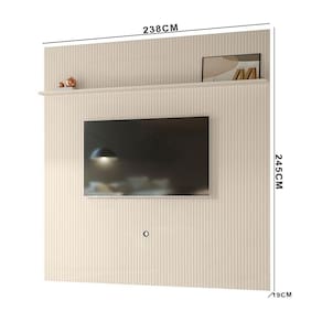 Painel Tv 75 Pol 238cm Ripado Para Sala Kalven M20 - D'rossi Off White O Painel Ripado Kalven, é a escolha ideal para quem busca um móvel imponente, moderno e durável. Com 238 cm de largura, é perfeito para ambientes amplos e aCômoda TVs de até 75 polegadas com segurança e elegância. Com design do piso-teto, ele preenche ambientes amplos com elegância e modernidade. Seu destaque fica por conta do painel em MDF frisado em baixo relevo, que adiciona textura, profundidade e sofisticação à decoração. A estrutura é composta por chapas de MDP e MDF de 12mm e 25mm, materiais derivados de madeira reflorestada, que garantem resistência ao empenamento, acabamento uniforme e longa durabilidade. O móvel ainda conta com uma prateleira prática e funcional, perfeita para aCômodar aparelhos eletrônicos, decorações ou objetos do dia a dia. Ideal para quem deseja transformar o ambiente com beleza, funcionalidade e acabamento de alto padrão. Dimensões do Produto: Altura: 245 cm Largura: 238 cm Profundidade: 19 cm Peso: 73 kg Especificações do Produto: Material da Estrutura: MDP/MDF Espessuras das Chapas: 15mm/25mm Acabamento: Pintura UV Escala de Brilho: Brilho/Fosco Peso Suportado: 38 kg distribuídos Suporta TV de até: 75 Polegadas Possui Prateleiras: Sim Quantidade de Prateleiras: 1 Prateleira Possui Gavetas: Não Possui Portas: Não Possui Puxadores: Não Possui Nichos: Não Possui LED: Não Possui Passa-Fios: Sim Possui Pés: Não Diferenciais: Painel frisado em MDF; Estrutura resistente em MDP/MDF; Prateleira integrada; Passa-fios. Sistema de Montagem: Parafusos/Cavilhas Manual de Montagem: Sim Complexidade da Montagem: Média Montagem: Recomendamos que seja feita por um profissional Garantia: 90 dias contra defeito de fabricação Instruções de Limpeza: Utilizar um pano limpo e levemente úmido Quantidade de Volumes 3 Caixas Medida das Embalagens Caixa 1: 238x18x15,2cm; Caixa 2: 246,5x61,1x3,2cm; Caixa 3: 246,5x62,3x3,2cm Entrega: É feita somente até o térreo ou portaria. Confira sempre as medidas das embalagens para assegurar que o produto passe por portas e escadas do local.