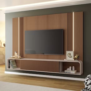 O Painel TV 85 Pol 219 cm Bancada Suspensa Emily Castanho/Off White é a escolha perfeita para quem busca uma solução elegante e funcional para organização e decoração. Seu design luxuoso se destaca pela iluminação LED no painel e pelos detalhes canelados nas laterais e nas duas portas, adicionando um toque de sofisticação e modernidade à peça. Além disso, possui portas de correr com trilho em alumínio, garantindo mais funcionalidade, resistência e durabilidade ao movimento. O painel para TV de até 85 polegadas conta também com cantos arredondados, garantindo mais segurança e um design harmônico. Ele é fabricado em MDP e MDF com espessura de 15mm o que promete resistência e qualidade ao produto. E tem mais: o detalhe canelado nas portas elimina o uso de puxador deixando um design ainda mais atual. Com certeza esse painel Emily vai transformar a sua sala de estar. Afinal, sua casa merece conforto e estilo!