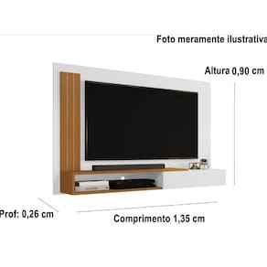 Painel Para Tv Até 55 Polegadas Maranata Com Porta Bco/Nature Painel para TV Até 55 Polegadas Maranata com porta Cores - Comprar Moveis em Casa Cor: Branco / Nature Painel Math sala para Tv até 55 Polegadas é embalada individualmente, com qualidade e . Vendido pela Comprar Moveis em Casa que oferece um ambiente sofisticado de alta qualidade e acabamento para sua sala. procure nossas redes sociais e confira todos nossos produtos e qualidade de atendimento : Este produto possui video no canal de auxilio de montagem. DIMENSÕES DO PRODUTO MONTADO: Altura 0,90 cm Lagura 1,35 cm Profundidade 0,26 cm Produto não acompanha suporte para fixar Tv Produto possui furação para passar cabos 1 Prateleira com nicho 1 Porta MDP / MDF Pintura UV MONTAGEM: Este produto acompanha kit de montagem + manual de instrução detalhando passo a passo de como montar. Este produto serve para tvs de até 55 polegadas e a tv deve ser fixada no painel para não exceder o peso das prateleiras. O manual descreve os pesos suportados em cada prateleira. A montagem do produto deverá ser feita por um profissional, para que não ocorram danos no produto. não nos responsabilizamos por erro de montagem Atenção: A montagem não é oferecida pela Comprar Moveis em Casa, a montagem do produto é por conta do comprador. OBSERVAÇÕES IMPORTANTES: A é de 90 dias por defeitos de fabricação. Se no ato de recebimento do produto o cliente verificar que o produto não está em prefeito estado, principalmente por ocasião de transporte irregular, o cliente deverá recusar o recebimento do produto e entrar em contato para resolver o problema. Podem haver variações referentes à tonalidade das cores expressas nas fotos, por conta de fatores como iluminação e brilho de cada monitor/celular. Fotos meramente ilustrativas não acompanham os produtos de decoração. Se atente a politica de troca/devolução da empresa. Marca: Não Informado