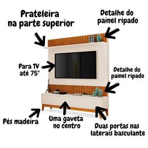 Rack Painel de TV Antalya para TV até 75 - Modernidade e Sofisticação com Detalhe Ripado, Base e Pés em Madeira Transforme sua sala de estar em um espaço moderno e funcional com o Rack Painel de TV Antalya. Projetado para suportar TVs de até 75 polegadas, este móvel é a combinação perfeita de estilo e praticidade. O acabamento nas cores freijó e off white oferece um visual elegante e contemporâneo, enquanto o detalhe ripado e os pés em madeira adicionam um charme único e natural ao ambiente. Características Principais do Rack Painel de TV Antalya: com TVs de até 75 polegadas: Proporcione uma experiência de cinema em casa com um móvel robusto e sofisticado, que se adapta perfeitamente a televisores de grande porte. Prateleira Superior Funcional: Ideal para exibir itens de decoração, como vasos, quadros e livros, ou para organizar aparelhos eletrônicos, como consoles de videogame e receptores de TV. Duas Portas Inferiores Basculantes: Oferecem amplo espaço de armazenamento, mantendo seu ambiente organizado e livre de desordem. Perfeitas para guardar controles remotos, DVDs, revistas e outros acessórios. Gaveta Prática: Adiciona uma camada extra de armazenamento, ideal para guardar objetos menores e manter tudo ao seu alcance e organizado. Detalhe Ripado Sofisticado: O design ripado agrega um toque contemporâneo e elegante ao móvel, além de proporcionar ventilação adequada para os dispositivos eletrônicos armazenados. Base e Pés em Madeira: A base sólida e os pés em madeira não apenas garantem estabilidade e resistência, mas também complementam o design moderno com um toque natural e acolhedor. Acabamento em Freijó com Off White: A combinação dessas cores cria um visual harmonioso e sofisticado, que se adapta facilmente a diferentes estilos de decoração, desde os mais clássicos até os mais modernos. Durabilidade e Qualidade: Confeccionado com materiais de alta qualidade, o Rack Painel de TV Antalya é resistente e ideal para o uso diário, garantindo beleza e funcionalidade por muitos anos. Eleve o Estilo e a Organização da Sua Sala de Estar! O Rack Painel de TV Antalya é a escolha perfeita para quem valoriza design e funcionalidade. Com amplo espaço de armazenamento, detalhes elegantes e construção robusta, este móvel transforma qualquer sala em um ambiente aconchegante e sofisticado. Adquira agora e crie o espaço perfeito para momentos de lazer e entretenimento com sua família e amigos. IMAGENS MERAMENTE ILUSTRATIVAS.