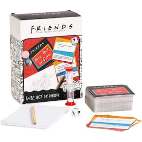 . Jogo trivia: Teste o conhecimento de todos sobre Friends the TV Show juntamente com suas habilidades de desenho e atuação com este jogo de quiz. Cada carta apresenta uma pergunta de quiz e uma cena que você deve agir ou desenhar quiz Amigos: Jogue este jogo divertido com 2 ou mais jogadores. O jogo inclui cartas quiz/act ou draw, papel e lápis, dados e temporizador. Veja o quanto você pode se lembrar do jogo sérieParty: Quão bem você conhece esta sitcom? É hora de descobrir! Traga este jogo friends para a sua próxima noite de jogo para descobrir quem realmente é o maior fã de FriendsOficially licenciado: Este colecionável de qualidade é uma adição única ao conjunto de qualquer fã. Dê essa mercadoria de colecionador legal para mães, pais, fãs, crianças, meninos e meninas que amam a cultura pop fun giftware: Para quem está no fandom em busca de itens inovadores e todas as coisas geek, louco e único, temos orgulho de criar brinquedos, canecas, colecionáveis e novidades