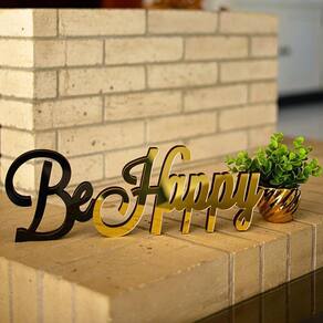 Palavra Be Happy Bicolor Em Mdf Decoryou - Ref 109 Preto
