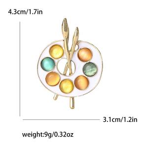 Material: Liga Tamanho: 3,1 x 4,3 cm Peso: 9 g Quantidade: você obterá todas as peças em quantidade igual à primeira foto principal. Design da paleta ShoArt: apresenta uma paleta clássica de pintor com manchas coloridas de tinta esmaltada e dois pincéis, simbolizando criatividade e arte. Material de liga durável: feito de liga premium com detalhes em esmalte, garantindo cores vibrantes e brilho duradouro. Tamanho elegante: medindo 3,1 x 4,3 cm e pesando 9 g, leve e atraente para uso diário. Estilo versátil: funciona como broche, alfinete de blusa, alfinete de lapela ou crachá, adequado para jaquetas, casacos, vestidos, chapéus ou bolsas. Acessório unissex: perfeito para artistas, estudantes e amantes da moda que apreciam joias exclusivas e artísticas.