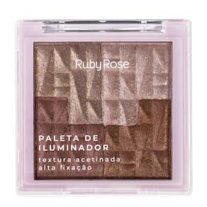 Com quatro tons multifuncionais, a Paleta de Iluminador Glowist Ruby Rose entrega efeitos diversos, com alta pigmentação, textura fina e acabamento aveludado.