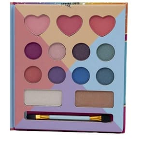 8 Cores de sombra, 2 Tons de iluminadores, 3 Tons de blush, 1 Pincel duplo, 1 espelho