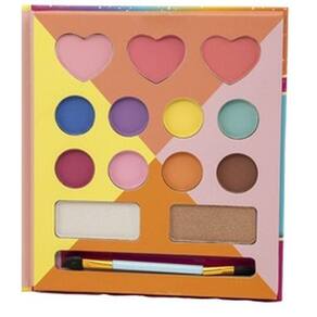 8 Cores de sombra, 2 Tons de iluminadores, 3 Tons de blush, 1 Pincel duplo, 1 espelho