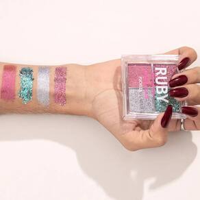 Se brilhar é a sua essência, a Paleta de Sombras Electric Glaze Ruby Kisses é feita para você. São quatro versões deslumbrantes - Blush Gold, Holo Sky, Fuchsia e Unicorn - que entregam cores vibrantes e glitter prensado com alta fixação, sem precisar de cola ou primer. Desenvolvidas para looks criativos e marcantes, essas paletas são o segredo por trás das produções mais impactantes de shows, festas e festivais. A textura é aveludada e super aderente, fácil de aplicar com os dedos ou pincel. Cada sombra desliza suavemente sobre a pele, oferecendo brilho intenso e acabamento . As partículas de glitter prensado foram cuidadosamente formuladas para garantir fixação duradoura sem desconforto nos olhos. Blush Gold traz tons quentes e sofisticados, ideais para makes glamourosas. Holo Sky aposta em tons holográficos frios que refletem múltiplas cores. Fuchsia entrega um mix vibrante de rosas e roxos para quem ama ousar. Unicorn combina tons pastel e cintilantes para looks criativos e mágicos. As paletas são veganas, cruelty-free e compactas, perfeitas para levar na bolsa e transformar qualquer produção com poucos toques. Use a criatividade, brilhe sem limites e destaque-se em qualquer ocasião com a Electric Glaze Marca: Não Informado