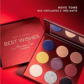 Paleta de Sombras Mariana Saad by Océane - Best Wishes Inspirada nos drinks clássicos da mixologia mundial, a Paleta de Sombras Best Wishes Mariana Saad by Océane traz 9 tons super versáteis, sendo 6 cintilantes e 3 mattes, do Champanhe ao Conhaque, para te motivar a compor diferentes maquiagens e criar um olhar diferente, desde o básico do dia a dia até o mais completo e sedutor para arrasar em uma festa. Características:ean: 7898576397654Marca: OcéaneModelo: Best WishesCores: 9 Tons versáteis 6 cintilantes / 3 matte Alta Pigmentação e Fixação Dimensões da Embalagem:Altura: 15cmLargura: 15cmProfundidade: 3cmPeso: 0,200KgGarantia: 3 Meses