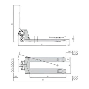 Conteúdo da embalagem: 1 Paleteira Carro Hidráulico 5000Kg 685X1150 mm Roda Duplo Nylon TP5300 Bovenau